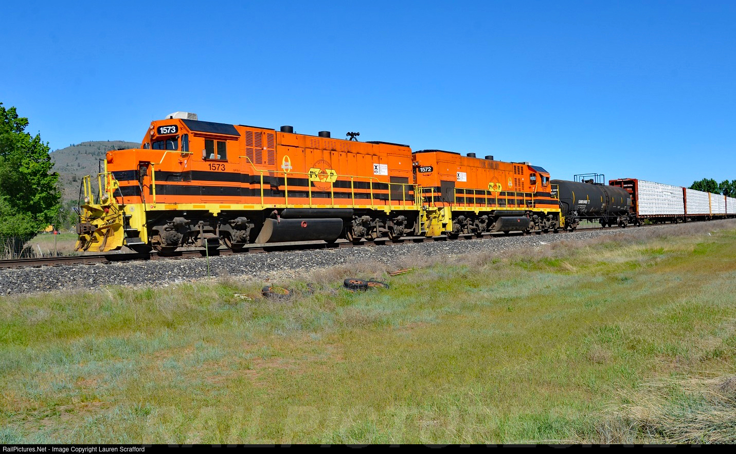| Cascade and Columbia River RR near Ellisforde, WA on May 5, 2025 led by PSAP 1573 & 1572. The propane tanker will be spotted in Ellisforde. |