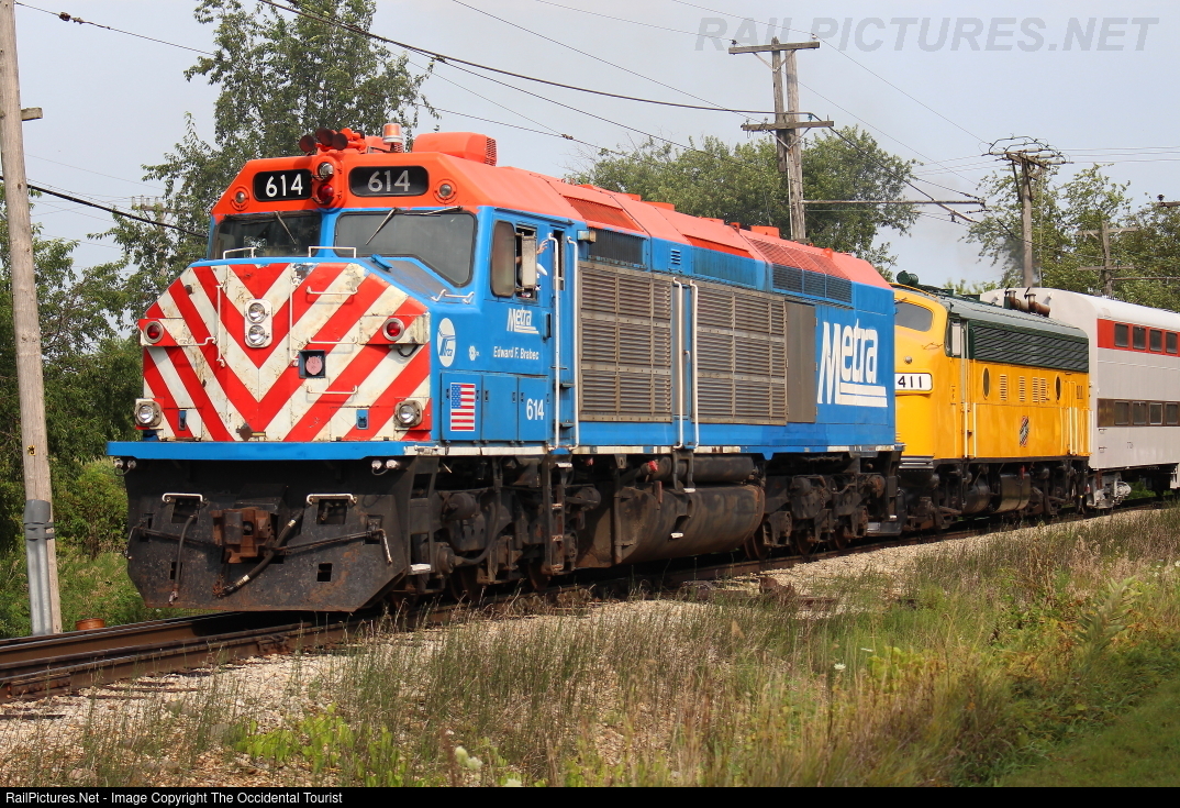 | The final mainline run for the 2025 IRM Diesel Days featured new arrival ex-METX 614 with the C&NW BiLevel train. It was the only train of the weekend oriented with the power facing west. It was the only run for 614, having been on display since Friday. This particular Diesel Days featured numerous new arrivals. |