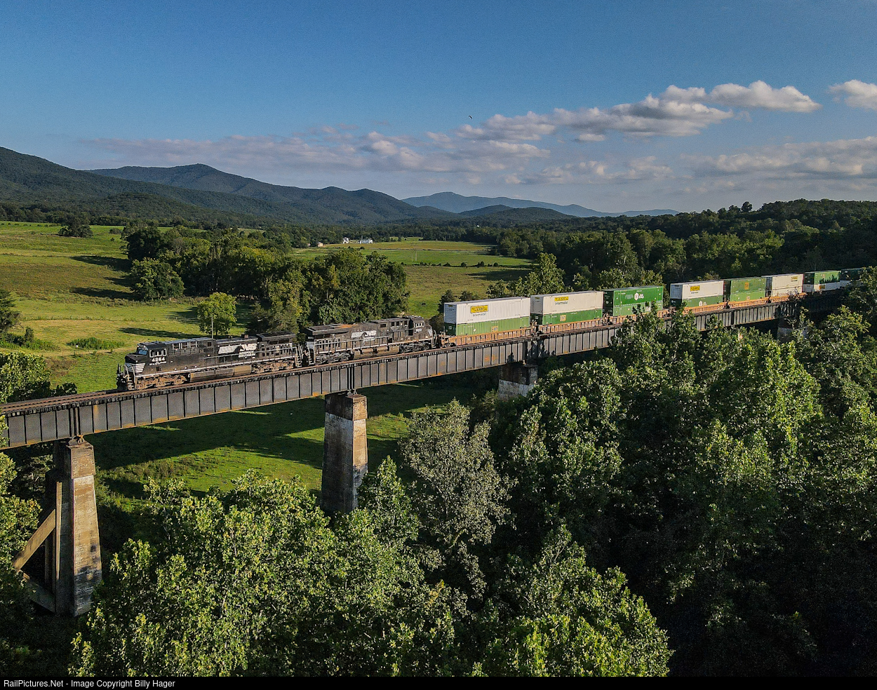 | Headed Northbound towards Front Royal and Hagerstown, NS 288 crosses the trestle over Jeremy’s Run between Summit and Rileyville on a hot August evening in the Shenandoah Valley |