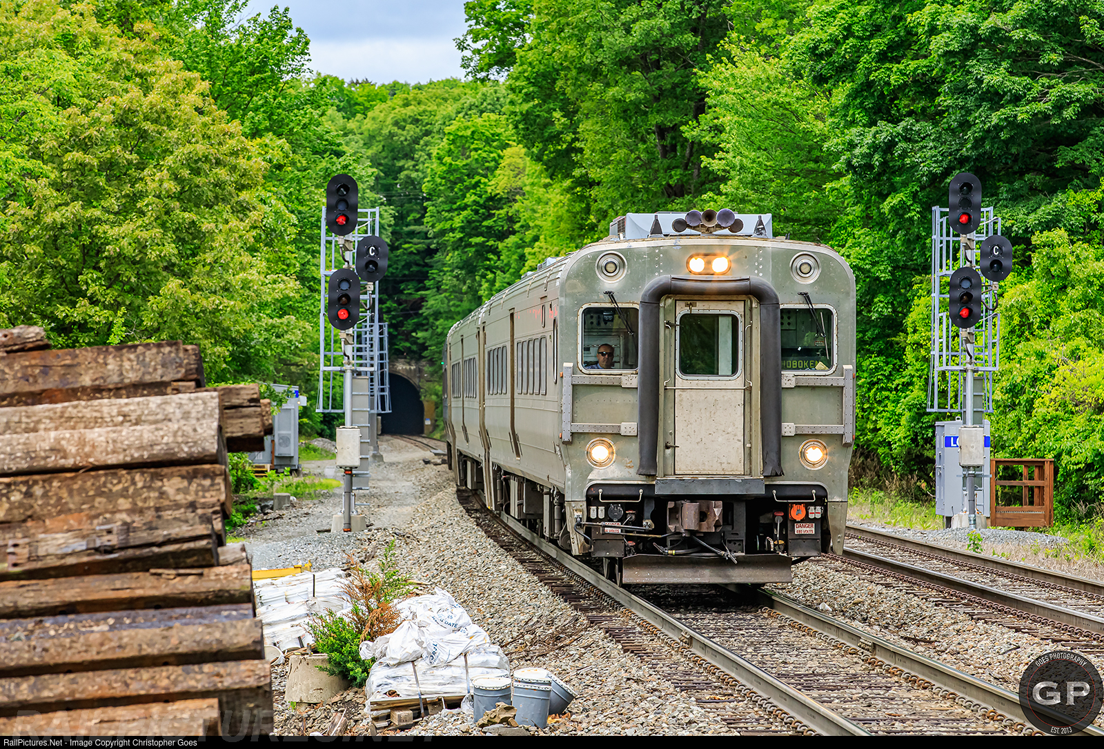 | Exiting the former Erie "Otisville Tunnel" Hoboken bound NJT commuter train with the cab-car leading rolls through the CP-OV interlocking approaching the station for it's stop with MTA 4901 for power on the rear. |
