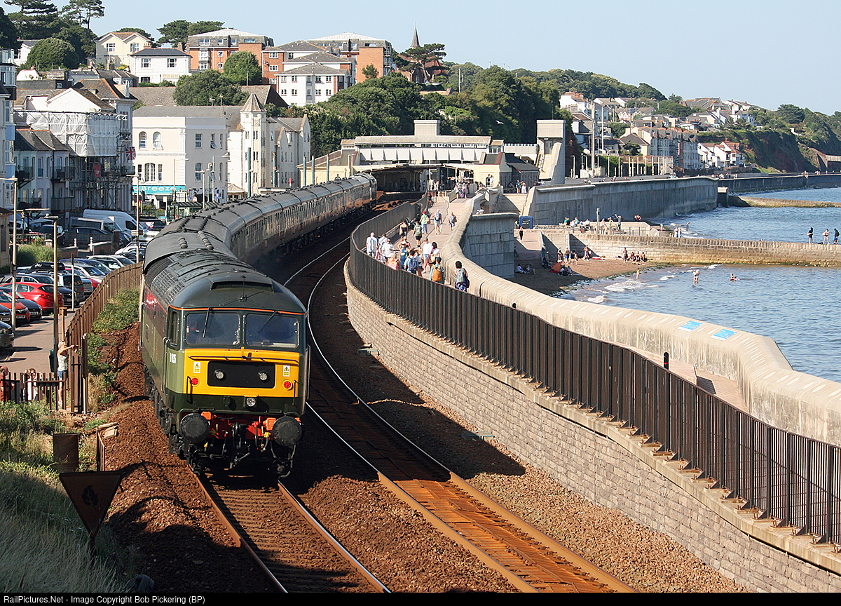 | the 1Z30 return of the Riviera Express, a Class 40 lead and a class 47 brings up the rear as the special storms into Dawlish. |