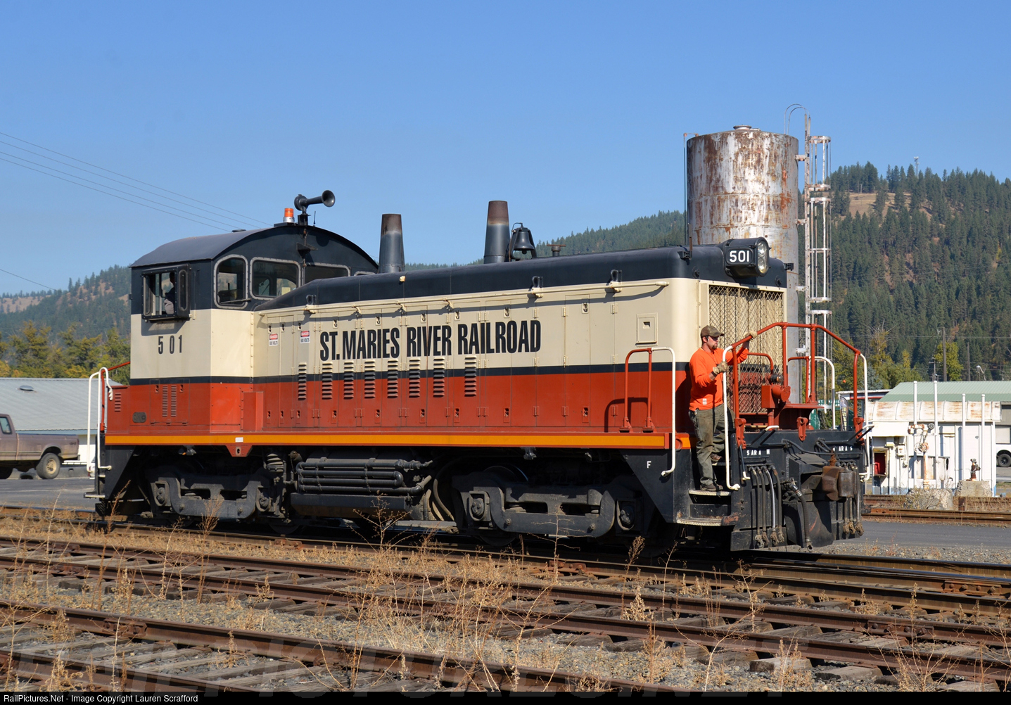 RailPictures.Net Photo: STMA 501 St. Maries River Railroad EMD SW1200 at St. Maries, Idaho by Lauren Scrafford
