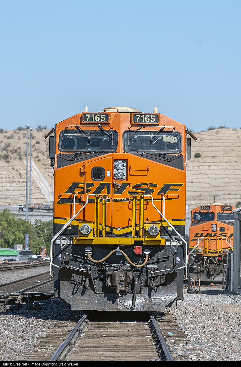 Local power sits in the BNSF yard in Victorville. In the foreground is ES44C4 7165 (teamed with ES44DC 732-something … that fourth digit was obscured). This power is assigned to BNSF Local R-CAL0041 14I.