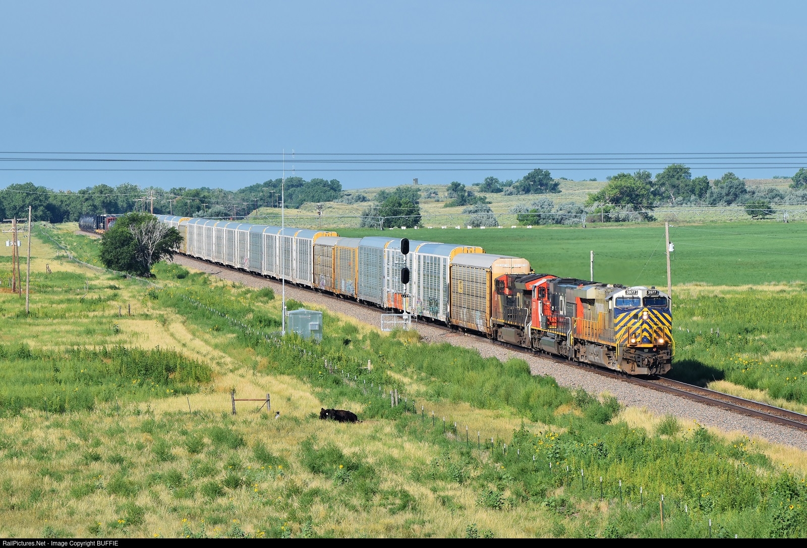 | Candian National 3977 (ES44AC) leads a freight towards Merino, Colorado as it heads to the yard in Sterling.
