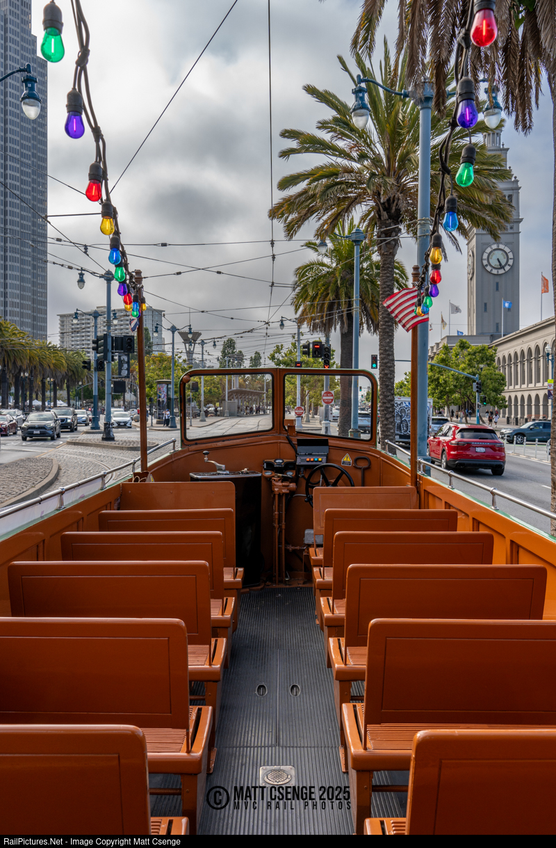 "Interior" view of San Francisco Municipal Railway (Muni) "boat tram" no. 233. The car is one of 12 open-top trams built for Blackpool Tramways that operated in the seaside English town.