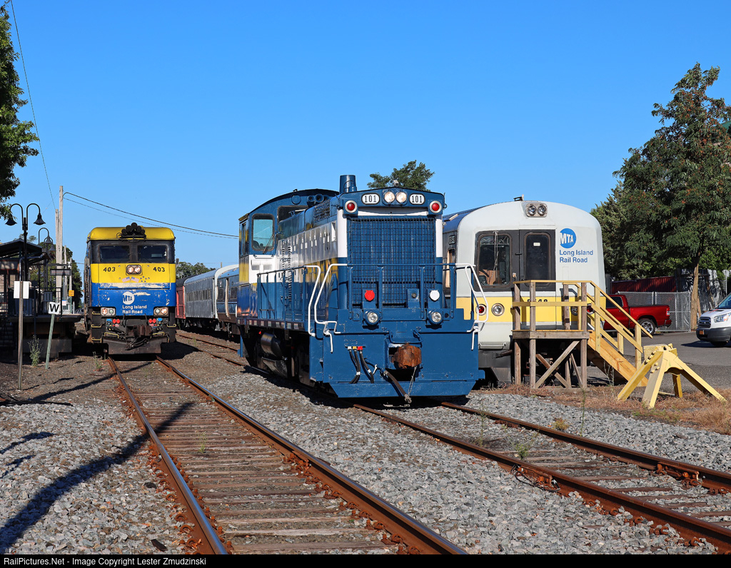 as an eastbound pulls into the station. 101 made the trip from Morris Park last night on X154E and will be an attraction at the Railroad Museum of Long Island's RailFest. |