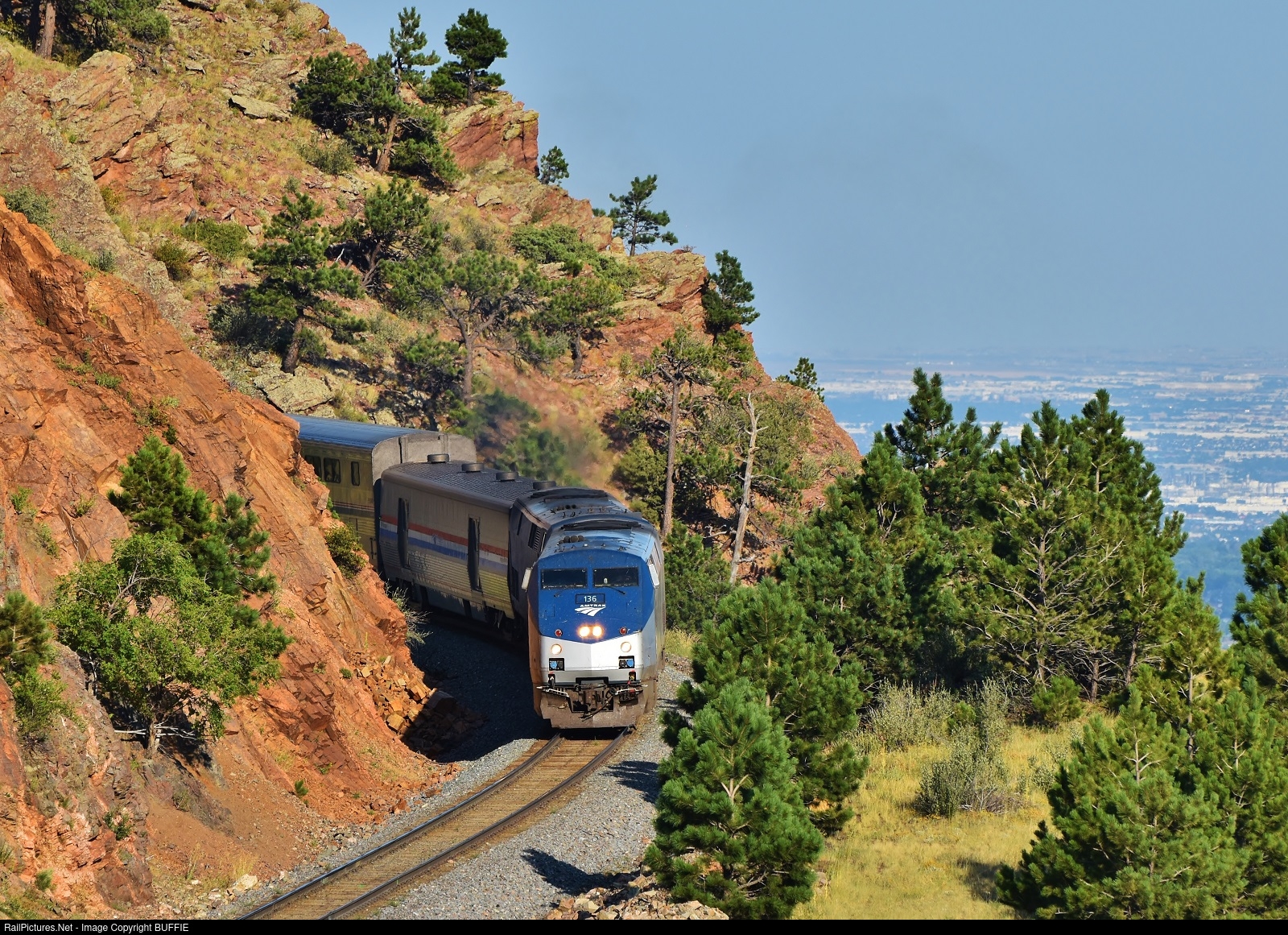 RailPictures.Net Photo: AMTK 136 Amtrak GE P42DC at Coal Creek Canyon, Colorado by BUFFIE