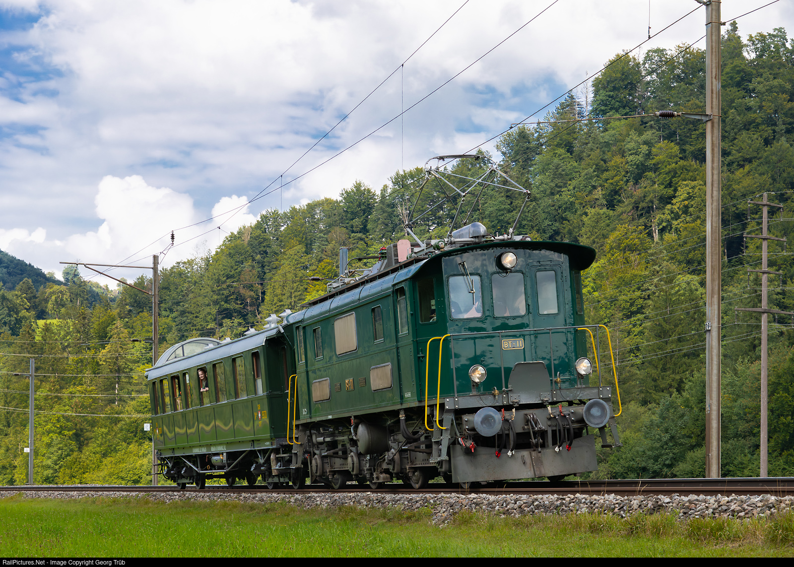 The four-axle Be 4/4 electric locomotive with Sécheron single-axle drive was built in 1931 by SLM and SAAS (Sécheron) for the Bodensee-Toggenburg Railway (BT) in a series of six. The highly successful design, with 1199 kW and a top speed of 80 km/h, was also delivered to the Emmental-Burgdorf-Thun Railway (EBT) and the Solothurn-Münster Railway (SMB). The Be 4/4 # 11 was transferred from the BT to the Südostbahn during the merger and was sold to SLM GmbH (Schorno Locomotive Management) in 2017. Since 2022, the locomotive has belonged to Open Track Railway Technology GmbH, is stationed in Winterthur, and is now operational again after various repairs. Be 4/4 # 11 is operating as train 31057 under the EVU UTL from Winterthur to Bauma with the dynamometer car Xd4 # 99701 between Wila and Saland in the Töss valley.