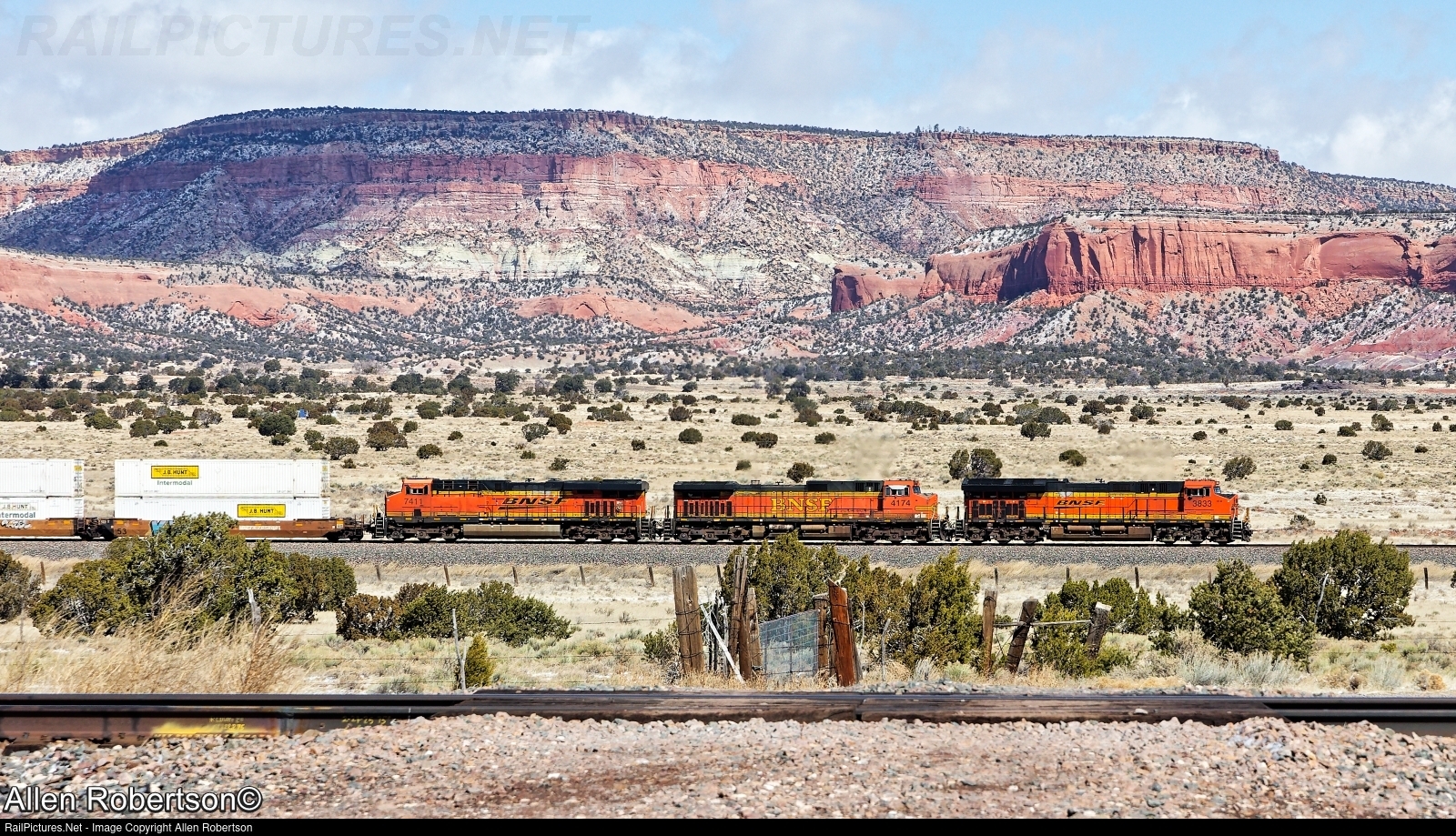 | BNSF 3833, 4174, & 7411 power a mix of COFC & TOFC eastbound |