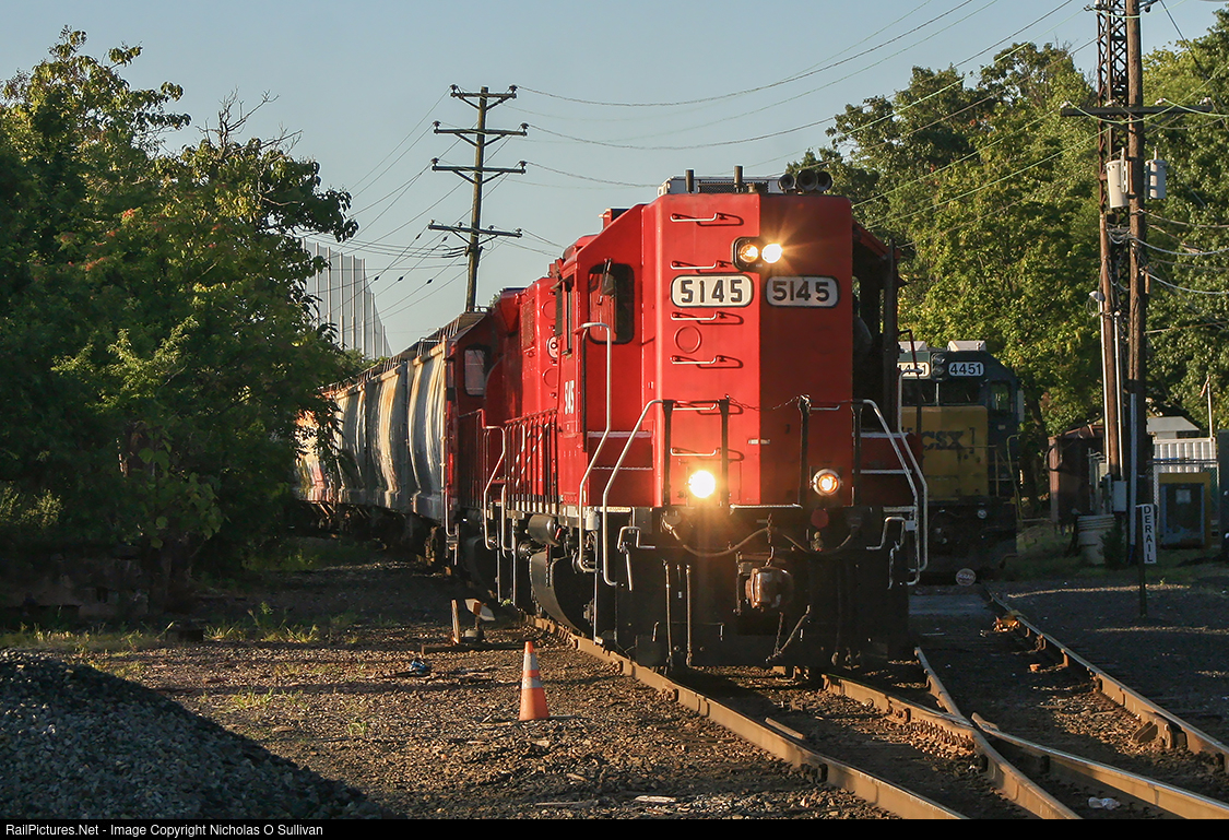 | A Raritan Central Railway crew is seen here picking up cars at Conrail's Metuchen Yard. Behind the leader is fellow high-hood GP38-2 locomotive RCRY 5107. Both engines formerly were engines for the Southern as SOU 5145 and SOU 5107, respectively, before going to Norfolk Southern as NS 5145 and NS 5107. They were sold to Larry’s Truck Electric (LTEX) in 2017 as LTEX 5145 and LTEX 5107 and purchased by the Raritan Central Railway in 2021. CSXT 4451 (formerly CR 3398) can be seen stored in the background. |