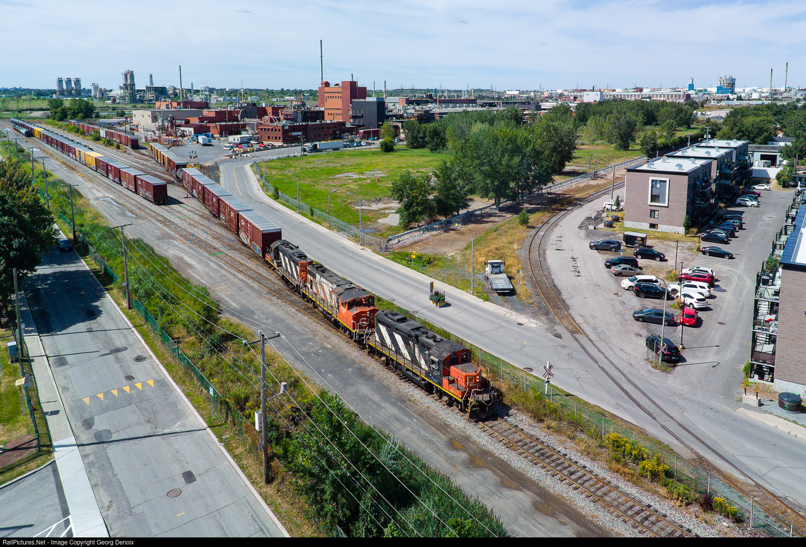 CN's YRP002 job out of Riviere-des-Prairies yard is busy switching the east end of the Montreal-Est yard. Mos of the busines there is for Canadian Copper Refinerie (CCR), the complex just beyond the yard, which takes about three hours of switching many dozens of box cars.