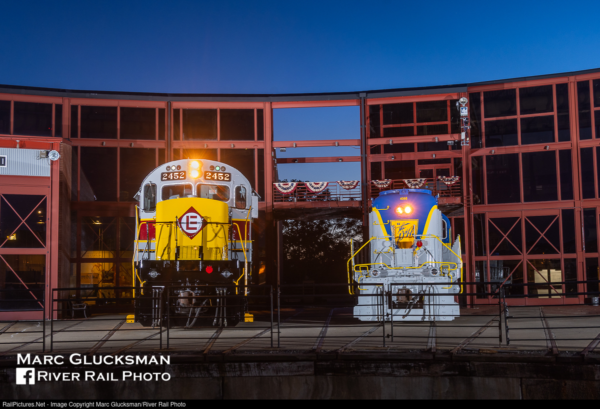 Night At Steamtown. On the night of Saturday, August 30, 2025, the second of 2 consecutive nights with photo events lit by supplemental lighting was held for ticketed patrons as part of the Railfest Weekend. This event focused on heritage diesel power, including some making their first scheduled appearance for a night shoot since being repainted. The event benefited the Iron Horse Society, a volunteer group that works with Steamtown. In this scene, Genessee Valley Transportation (GVT)/Delaware-Lackawana (DL) Erie Lackawanna (EL) 2452 (C425, Alco, 10/1964) and Delaware & Hudson (DL) 4068 (RS3, Alco, 3/1952) are featured. Both were re-painted within the past year.