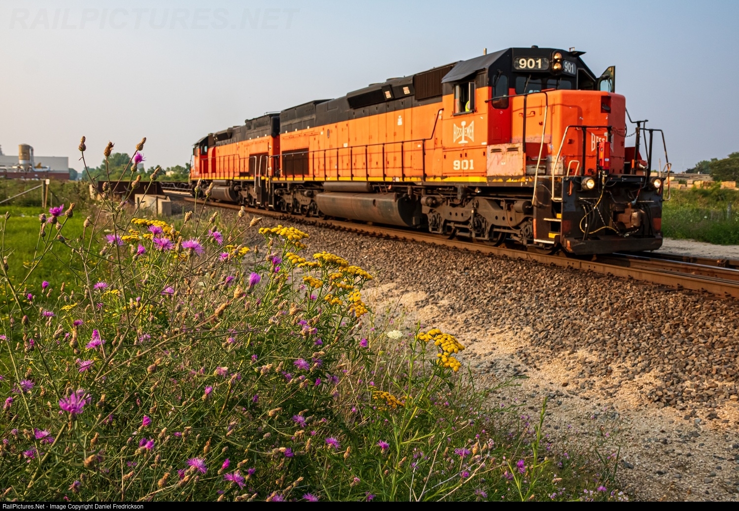 Bessemer & Lake Erie SD40T-3s 901 and 906 are two of the assigned helper units in Canadian National's Fond du Lac, WI yard. Here, the duo crosses Kohlman Road south of town, preparing to shove on the rear end of CN M336, which is just ahead waiting for the assist over Byron Hill.