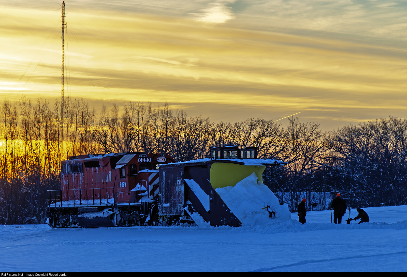 The last mile is the longest for the Dakota, Minnesota and Eastern plow train at Jackson, MN on 3/5/2007.. At the end of their plow run they have clear crossings and free switches to Wye their plow and power.