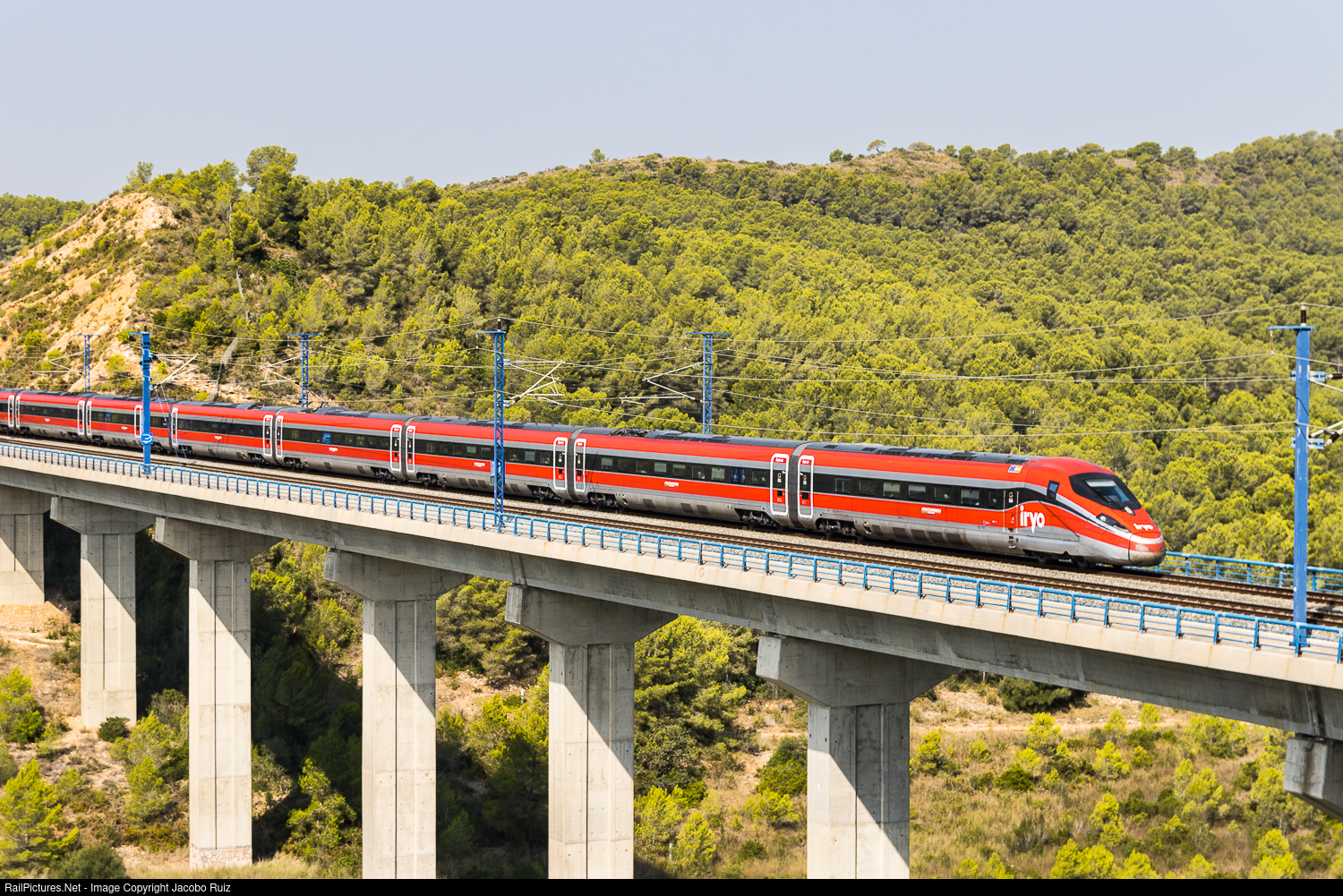 A Frecciarossa high speed train, belonging to Iryo operator in Spain, from Madrid to Barcelona.