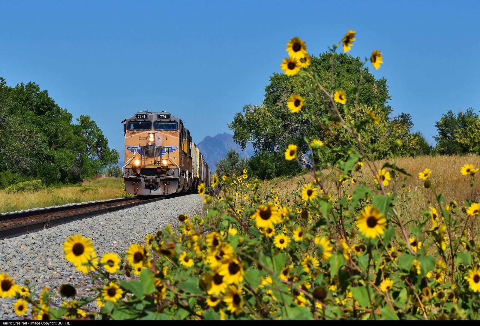 The wild sunflowers are in full bloom along the Moffat Tunnel Sub as UP 7741 (ES44AC) heads to Denver, Colorado.