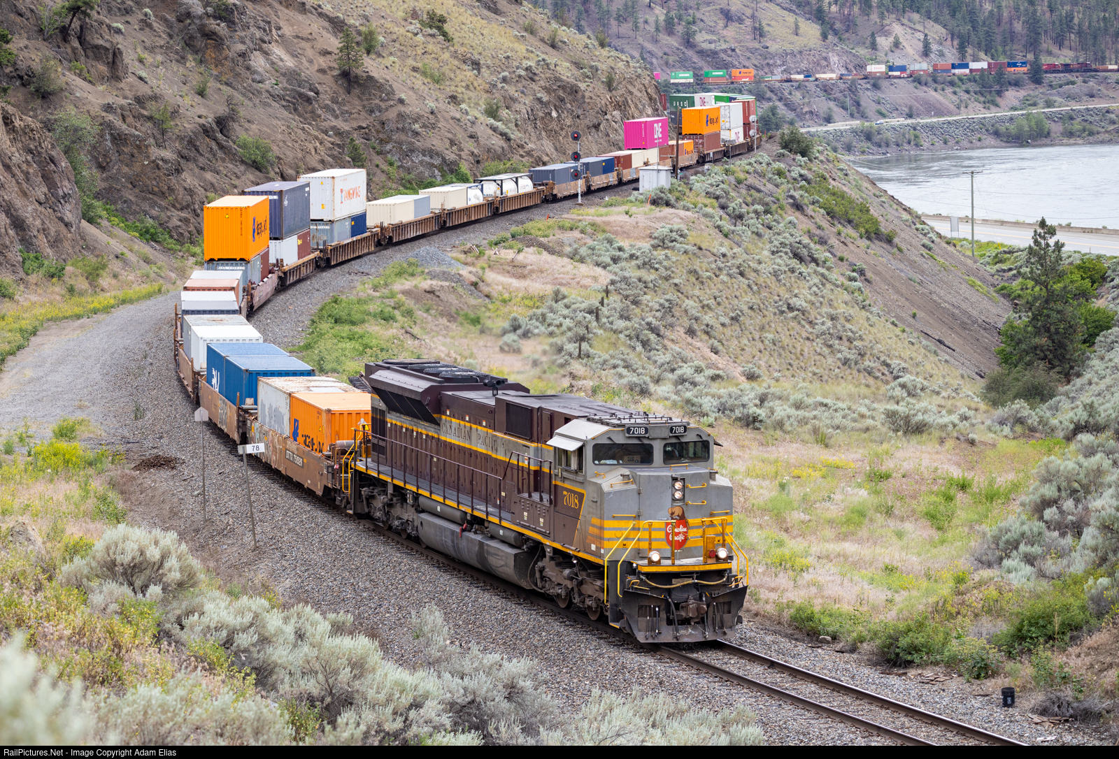 | CP 148 for Chicago heading through the Thompson Canyon with a royal SD70ACU doing the honors. I was told by a local that it is not often they let the SD70ACUs lead through the canyons. Pure luck to get a SD70ACU out here on my one day I had to Railfan the area, let alone a royal paint. I couldn't have asked for a better leader to chase out here. |