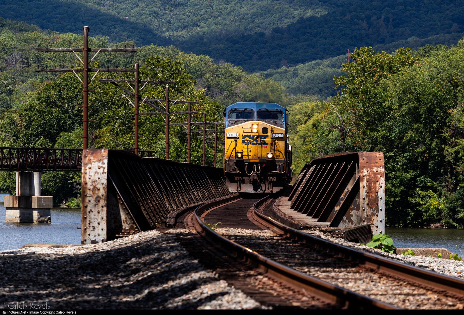 Not too far out of Russell, worn YN2 AC44 #351 brings M653-31 east across the James River at Snowden headed towards Lynchburg. This was a busy day on the James River, especially for a Sunday. A B407 was running on approaches behind these guys, and two empty trains were between Lynchburg and here.