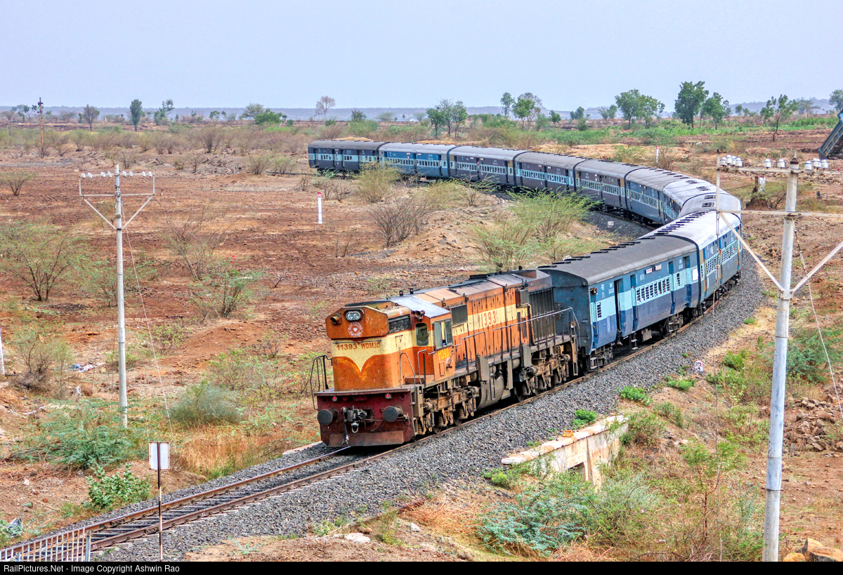 WDM3a #11393 Pune Baramati Passenger train curves into maladgaon for a scheduled halt.