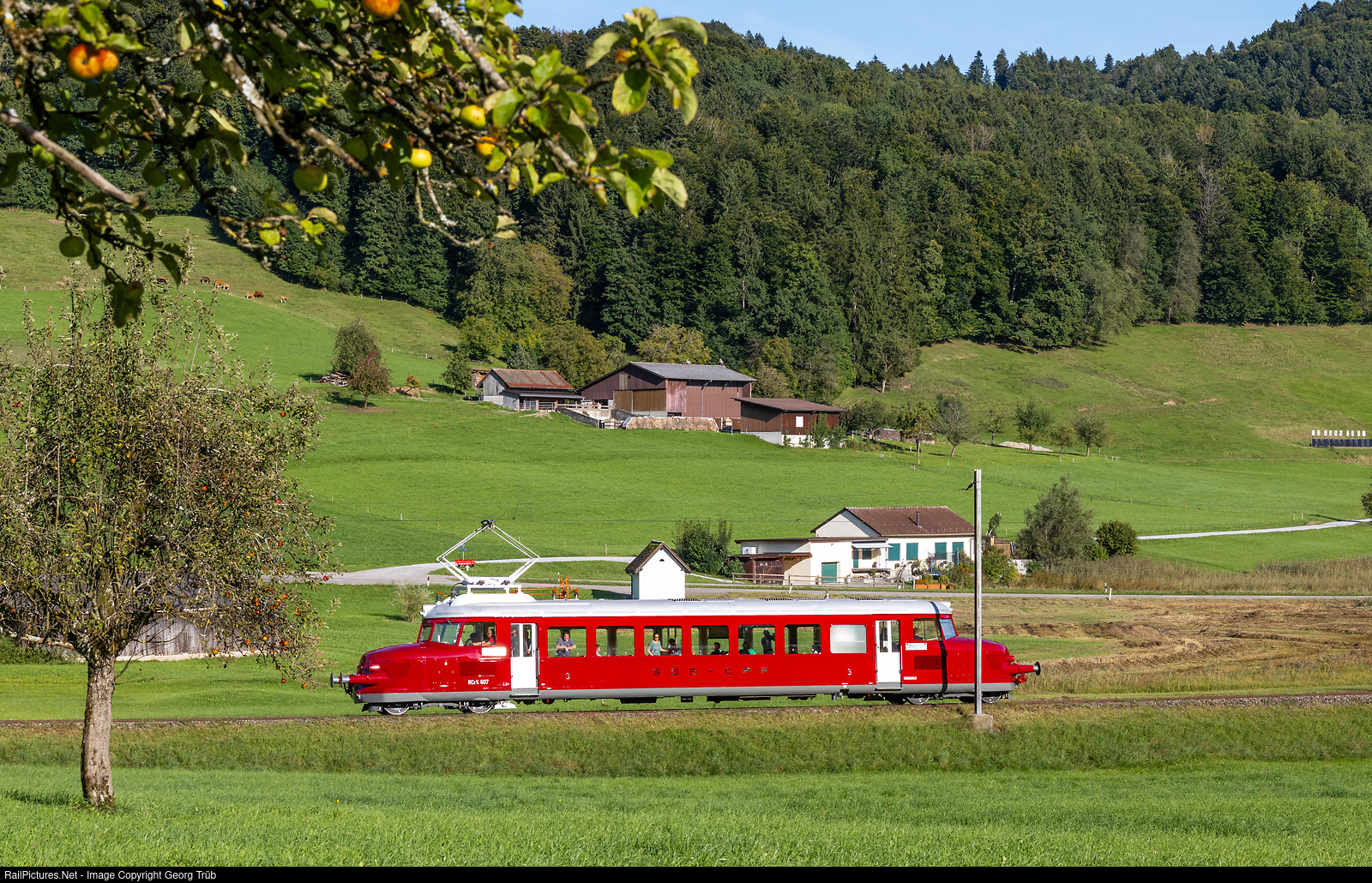 | Former SBB "Red Arrow" RCe 2/4 # 607 of the Oensingen-Balsthal-Bahn is running on the line of the Dampfbahnverein Zürcher Oberland (DVZO) between Bäretswil and Neuthal, on a journey from Hinwil to Bauma. Due the celebration of 150 years Tösstalbahn (Töss Valley Railway) this weekend the Red Arrow circulated between Winterthur and Hinwil via Effretikon-Wetzikon several times before. Now it is running to the overnight place in Bauma. |