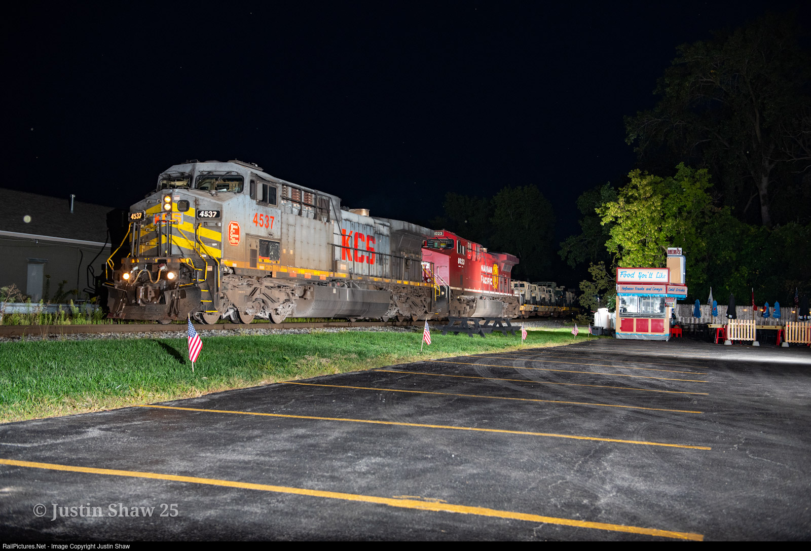 KCSM 4537 Gray leads a Military Train to Fort Drum as it goes thru Liverpool