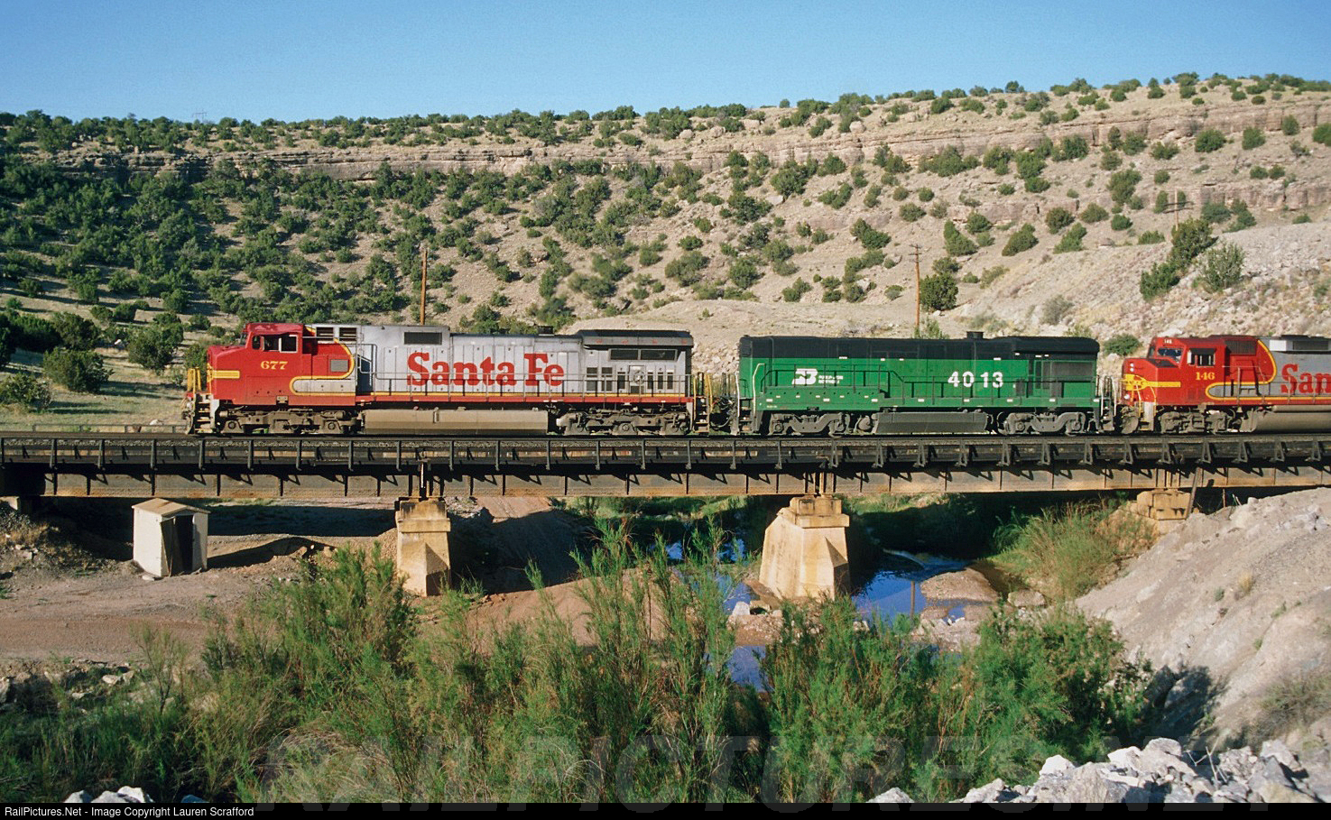 RailPictures.Net Photo: ATSF 677 Atchison, Topeka & Santa Fe (ATSF) GE C44-9W (Dash 9-44CW) at Abo Canyon, New Mexico by Lauren Scrafford