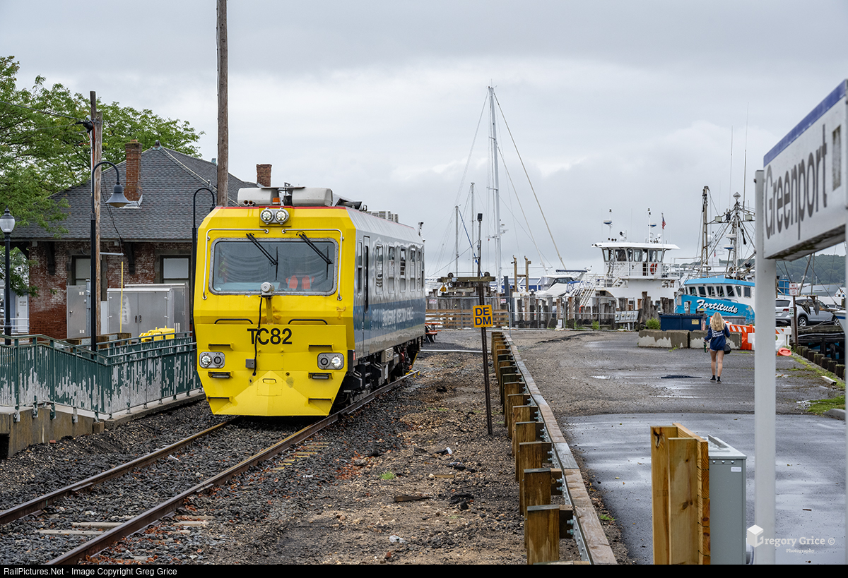 On the morning of July 10th, 2025, Long Island Rail Road’s "TC-82" Track Geometry Vehicle idles at the bumper block in Greenport, New York, the eastern terminus of the Main Line. Built by Plasser American Corporation, TC-82 is used to perform track inspections across the LIRR system.