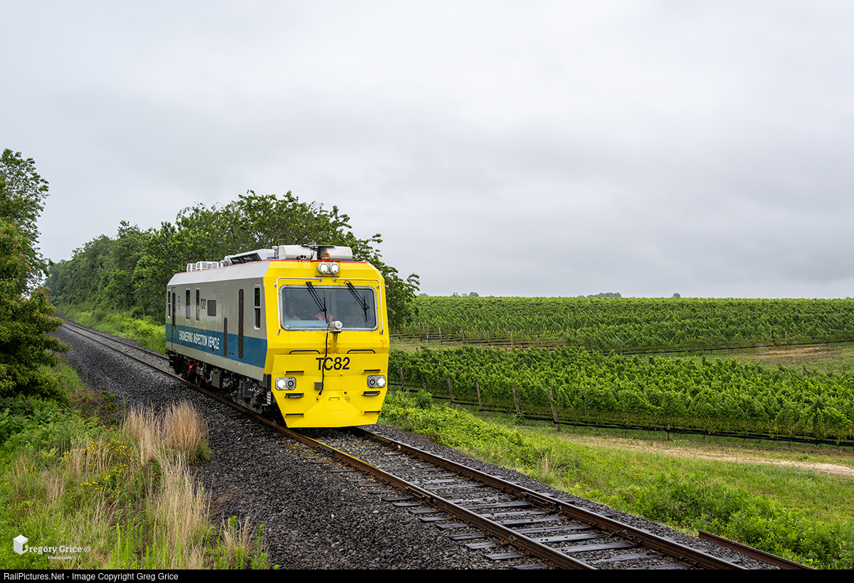 On July 10, 2025, Long Island Rail Road’s "TC-82" Track Geometry Vehicle passes the historic Ruland Farmland (now owned by Rose Hill Vineyards) in Mattituck, New York, on the Main Line. Built by Plasser American Corporation, TC-82 is used to perform track inspections across the LIRR system. The Ruland farm property has been cultivated since 1736, earning it a “Bicentennial Farm” designation, a title reserved for family-operated farms that have been continuously owned and worked by the same family for at least 200 years.