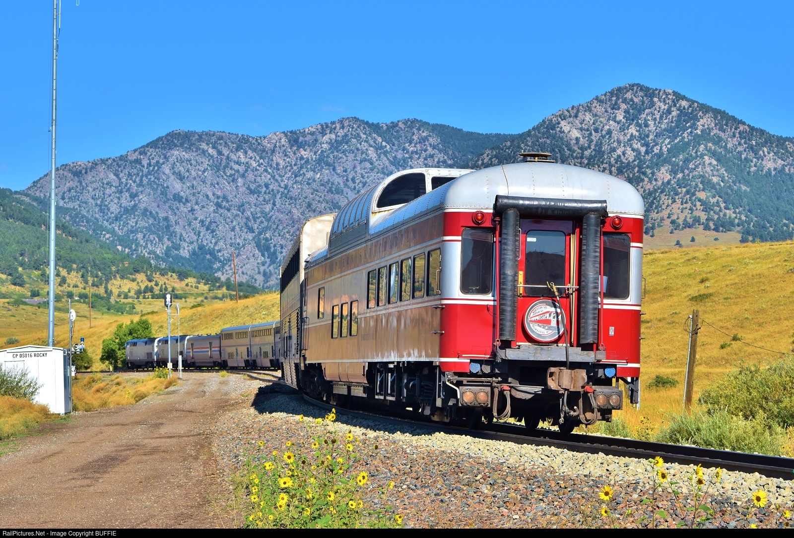 | The private car Northern Sky (800588) runs up the Moffat Tunnel Sub on the back of the California Zephyr. The former Union Pacific dome car was built in 1955 and has traveled often recently across the country on the back of the Zephyr. It is seen here running through Rocky, Colorado.