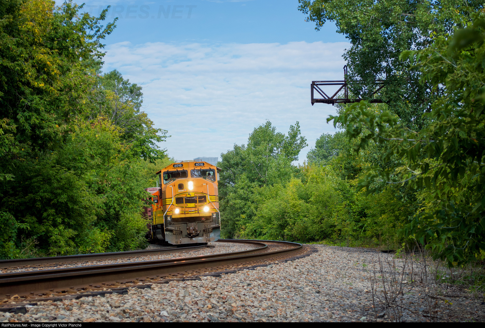 QG train 501 to CPKC St. Luc yard negociates the "Breslay" curve, east of Parc Station, with SD70MAC 4016 leading. QGRY 4016 was built as BNSF 8860 in 1999, and purchased by G&W in 2022 to replace the old fleet of SD40-3s. On the right, an old signal bridge structure still stands on what was before a third track to enter in Outremont yard, now a modern residential area.