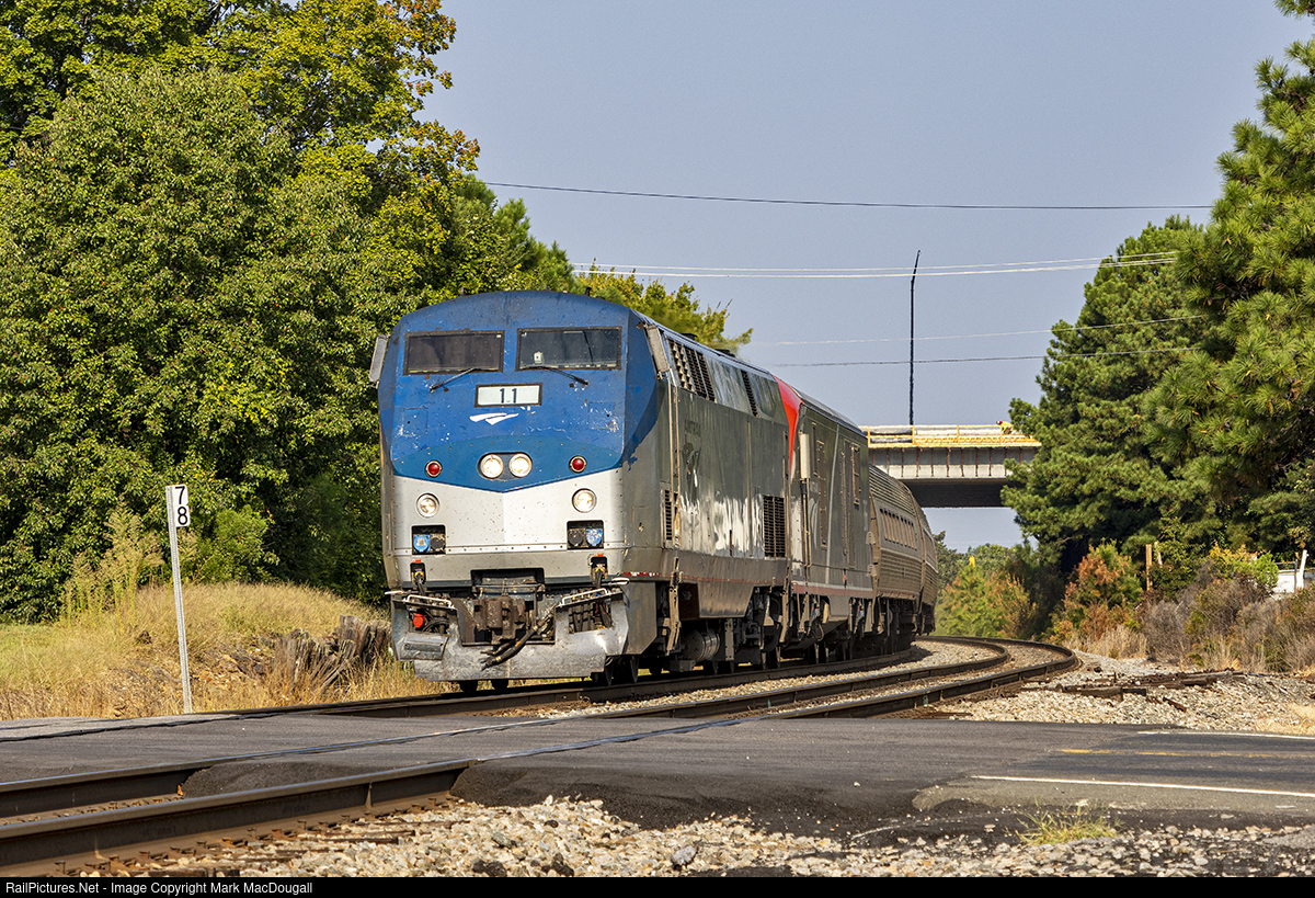 RailPictures.Net Photo: AMTK 11 Amtrak GE P42DC at Raleigh, North Carolina by Mark MacDougall