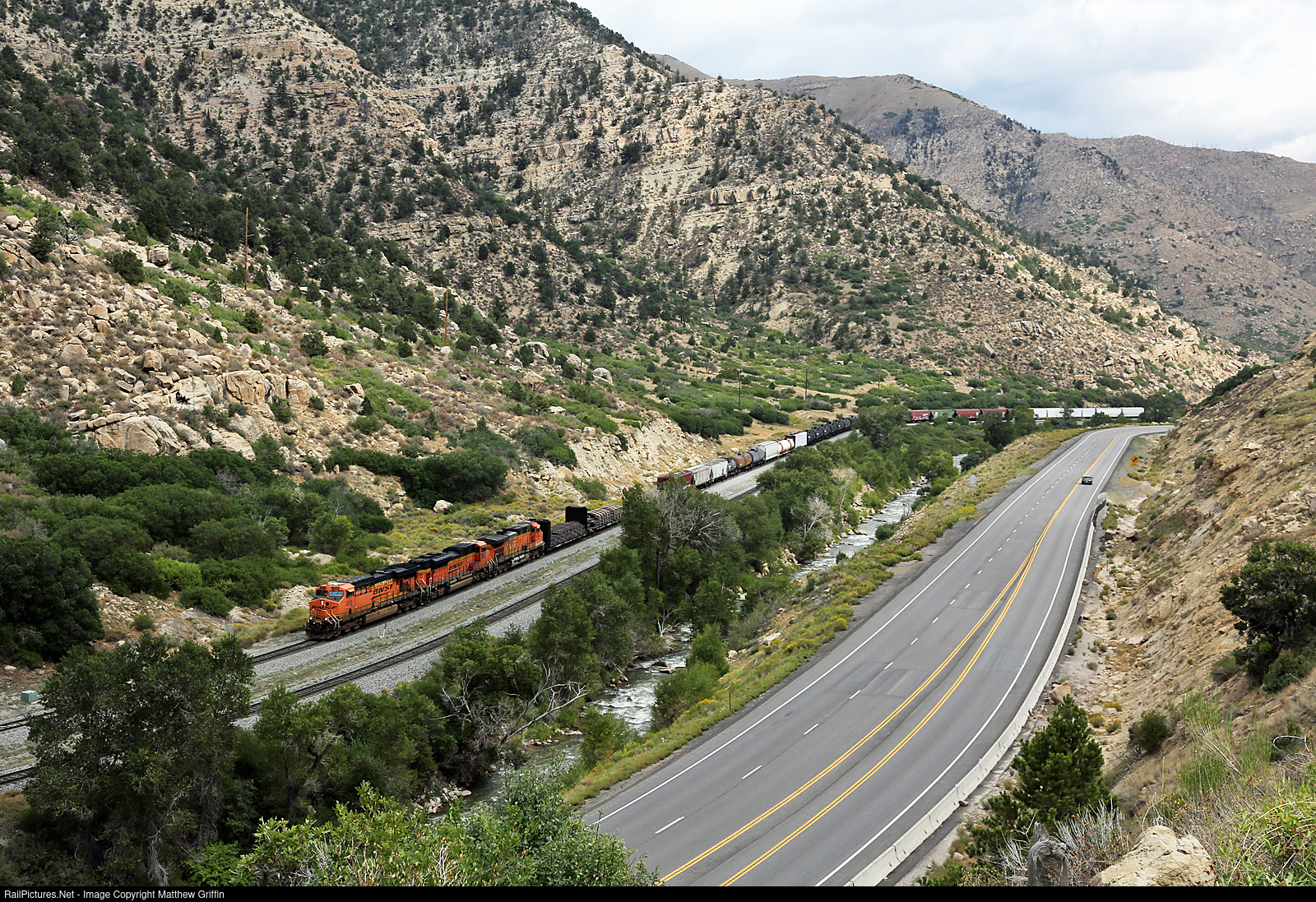 BNSF's Denver-Provo manifest works up the Price River Canyon near Lynn, UT.