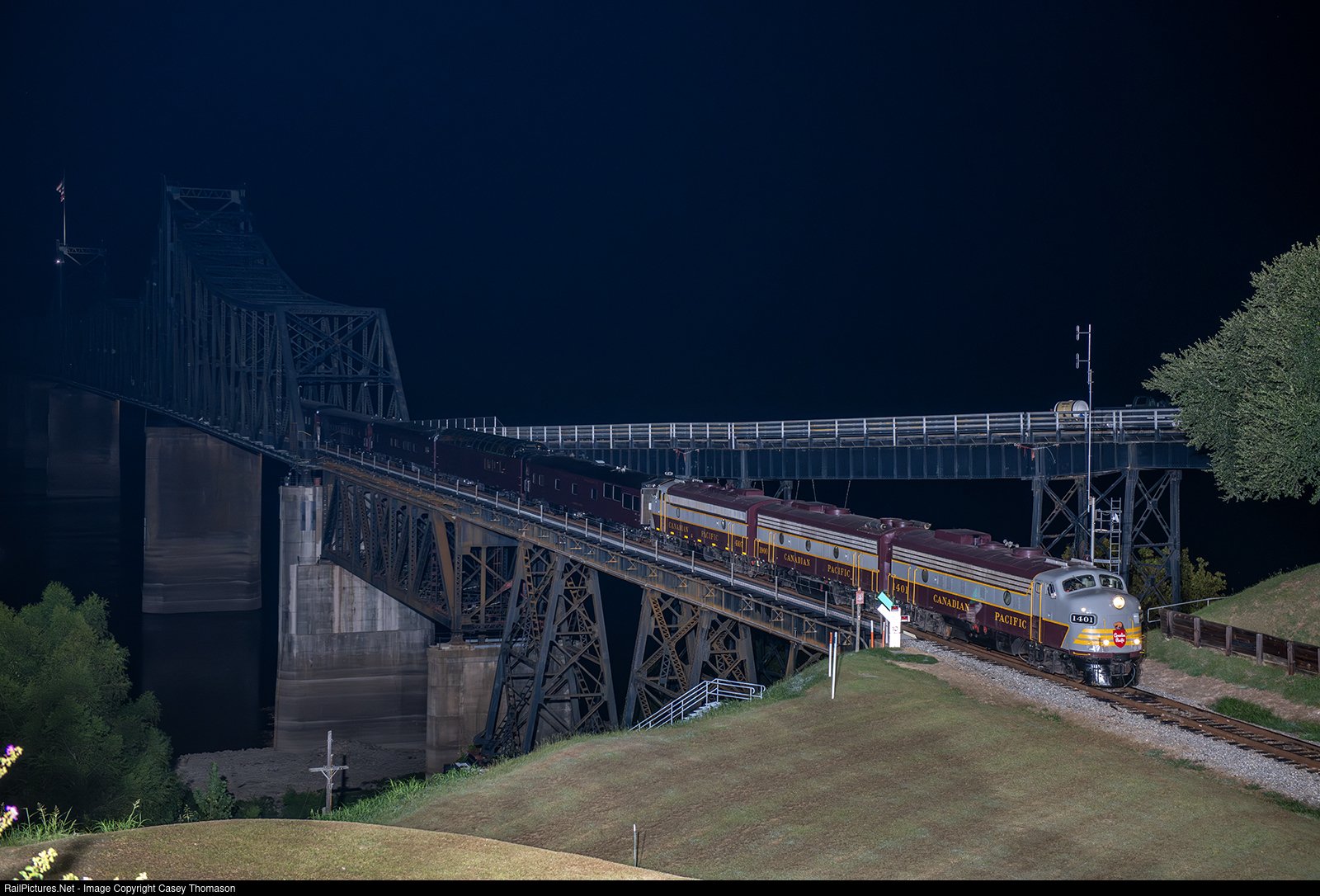 It's 12:20am at the Mississippi Welcome Center in Vicksburg, and the CP business train has almost finished its 10mph crossing of the Mississippi River Bridge from Louisiana, enroute to Montgomery, Alabama.