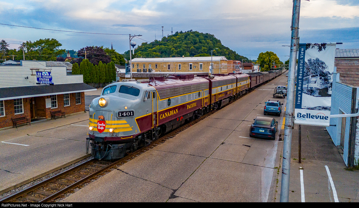 | Good Morning, Bellevue. Not long after sunrise, the CPKC business train takes a stroll down the streets of Bellevue, Iowa. |