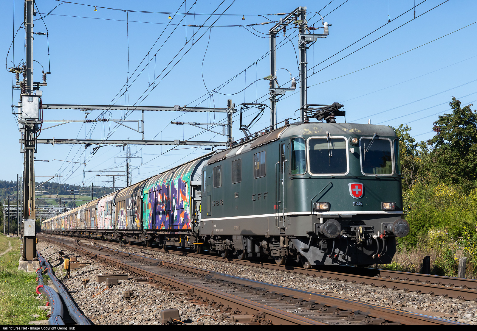 In july, 2021, the Re 4/4 II # 11335 (Re 420 # 335) of the SBB, built in 1982, left the SBB works in Bellinzona with a new green "heritage" paint scheme, the reason is not known yet. This day, she pulls the freight train 63184 from Romanshorn via Frauenfeld-Winterthur-Kloten-Regensdorf to the Limmattal shunting yard, between Winterthur and Kemptthal.