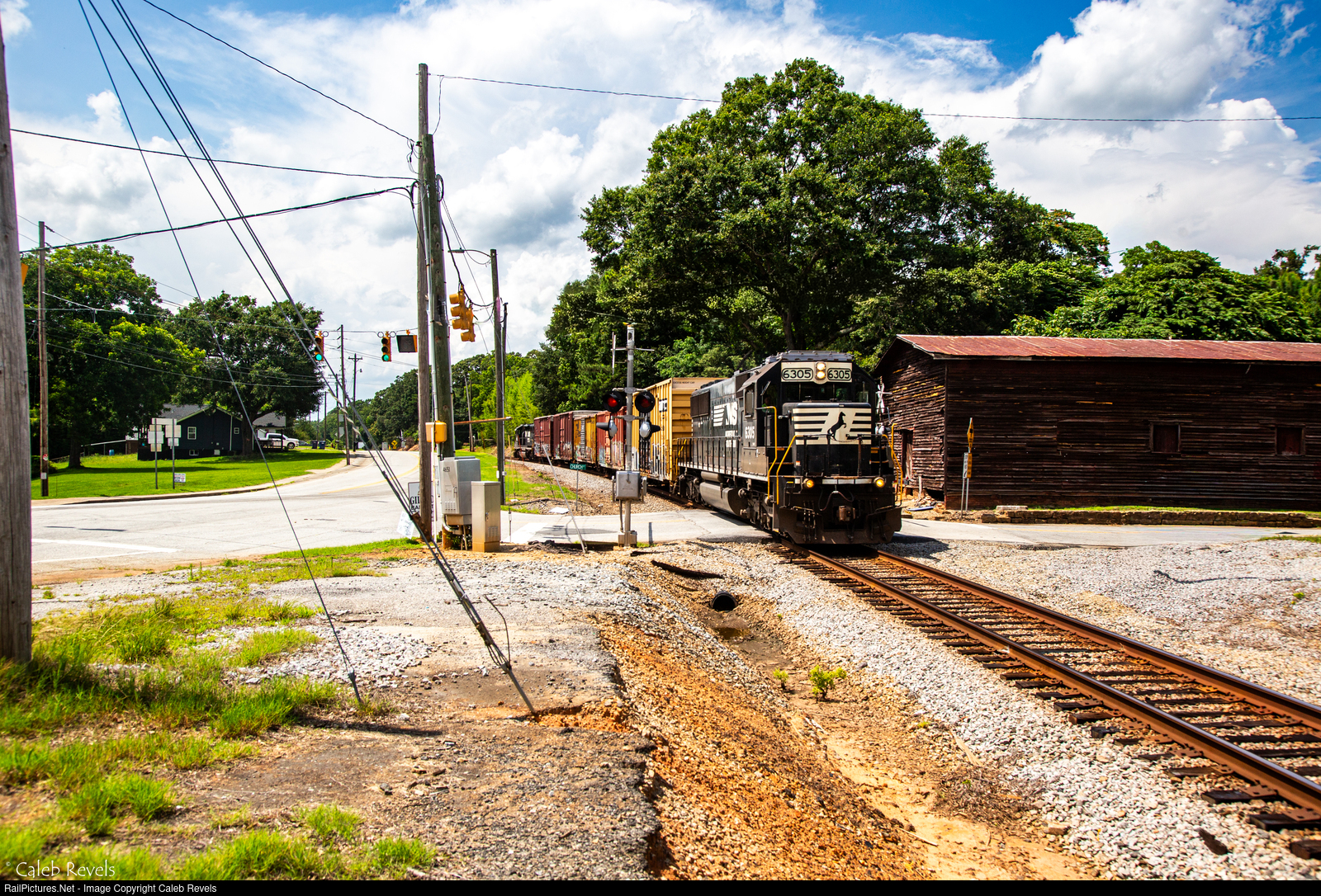 | Headed to the T80, NS P86 darts east through the small town of Jonesville, SC with NS 6305 on the east end of the train and NS 1646 on the west end. |