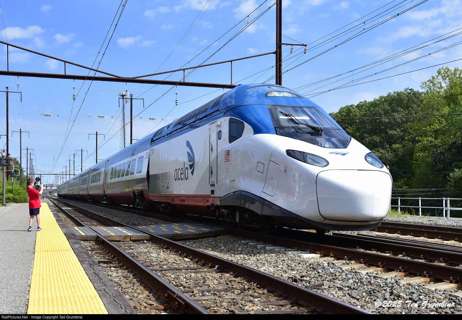 | A young man who’s a frequent visitor to the Perryville Railroad Museum carefully records the passing of NextGen Acela Trainset 14, which is holding down the Train 2251 assignment on September 20th, 2025. |