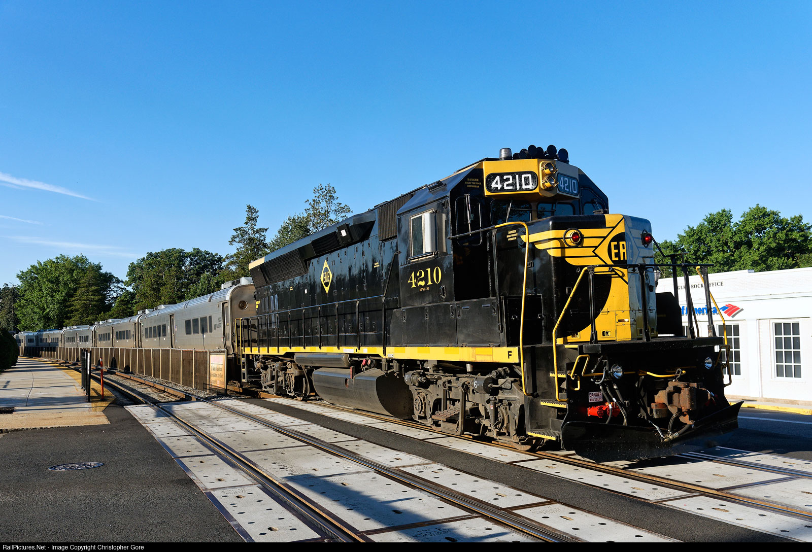 Erie heritage GP40PH-2B 4210 stopped at Glen Rock's Boro Hall station.