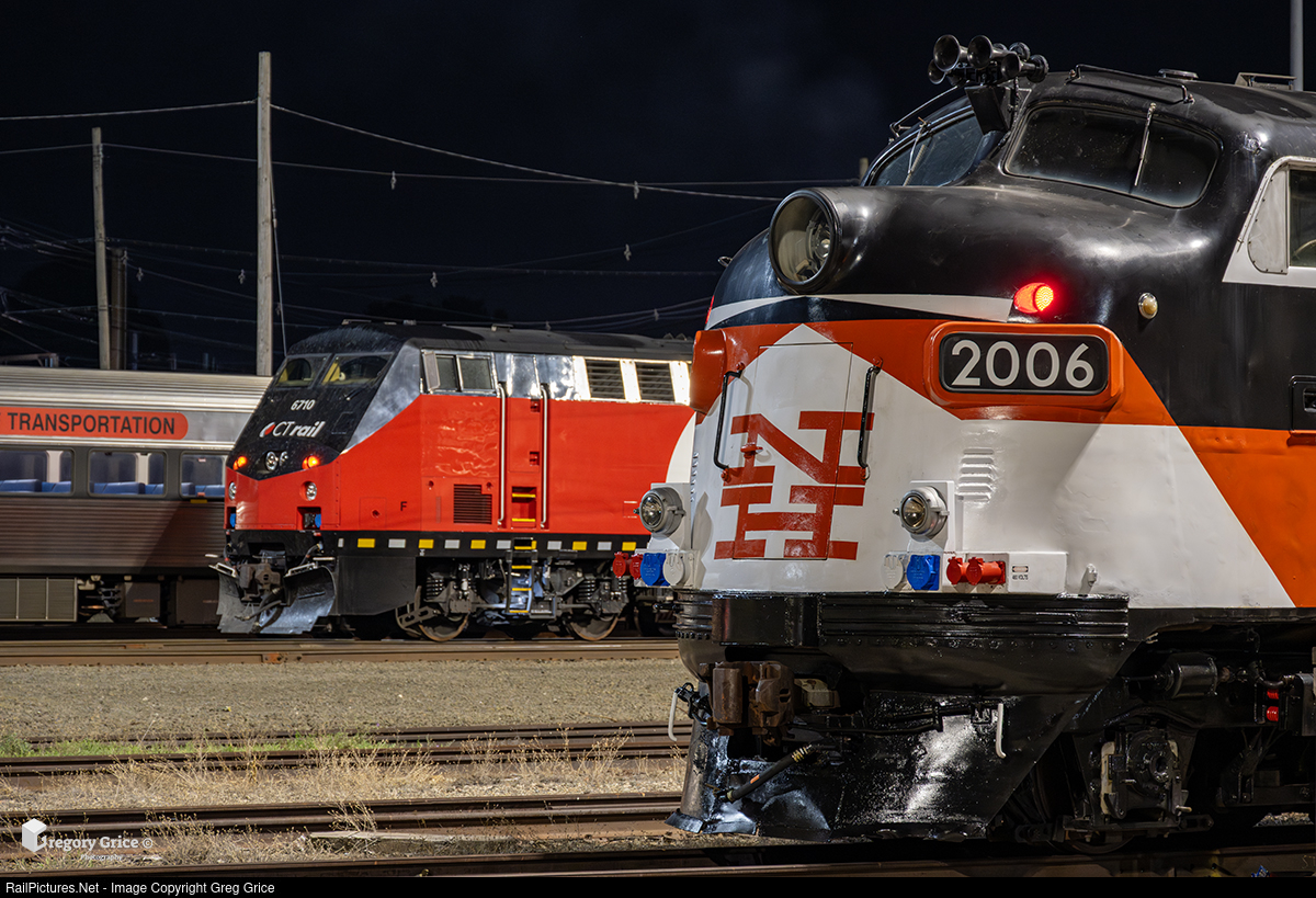On the night of September 20th, 2025, Metro-North Railroad’s “New Haven Switcher” crew shuttled EMD FL9 CTDX #2006 and General Electric M2 pair MNCW #8707/8706 from the Danbury Railway Museum in Danbury, CT, to New Haven Yard via the Danbury Branch and the New Haven Line. The equipment was moved in preparation for display at the 2025 Metro-North Open House. In this photo, FL9 2006 sits at its new temporary home on Track 54 in New Haven Yard as a CTrail P40 idles in the background.