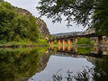 Westbound MARC train led by MARC MP36 #23 crosses the bridge at Harpers Ferry.