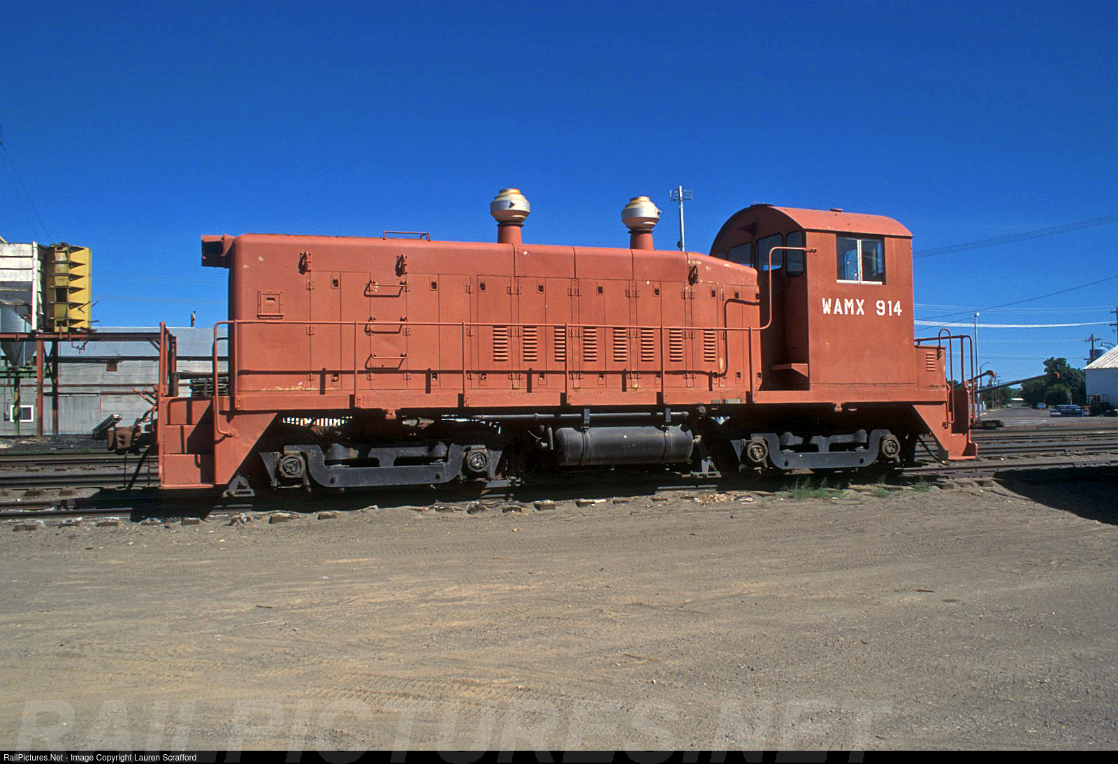 | WAMX 914 roster photograph in the Eastern Idaho RR yard in Rupert, ID on July 14, 2000. This SW9 was built for the SP&S as the #43 in August of 1951. It was renumbered to BN 167 with the merger and went to Titan as the 167 also. |