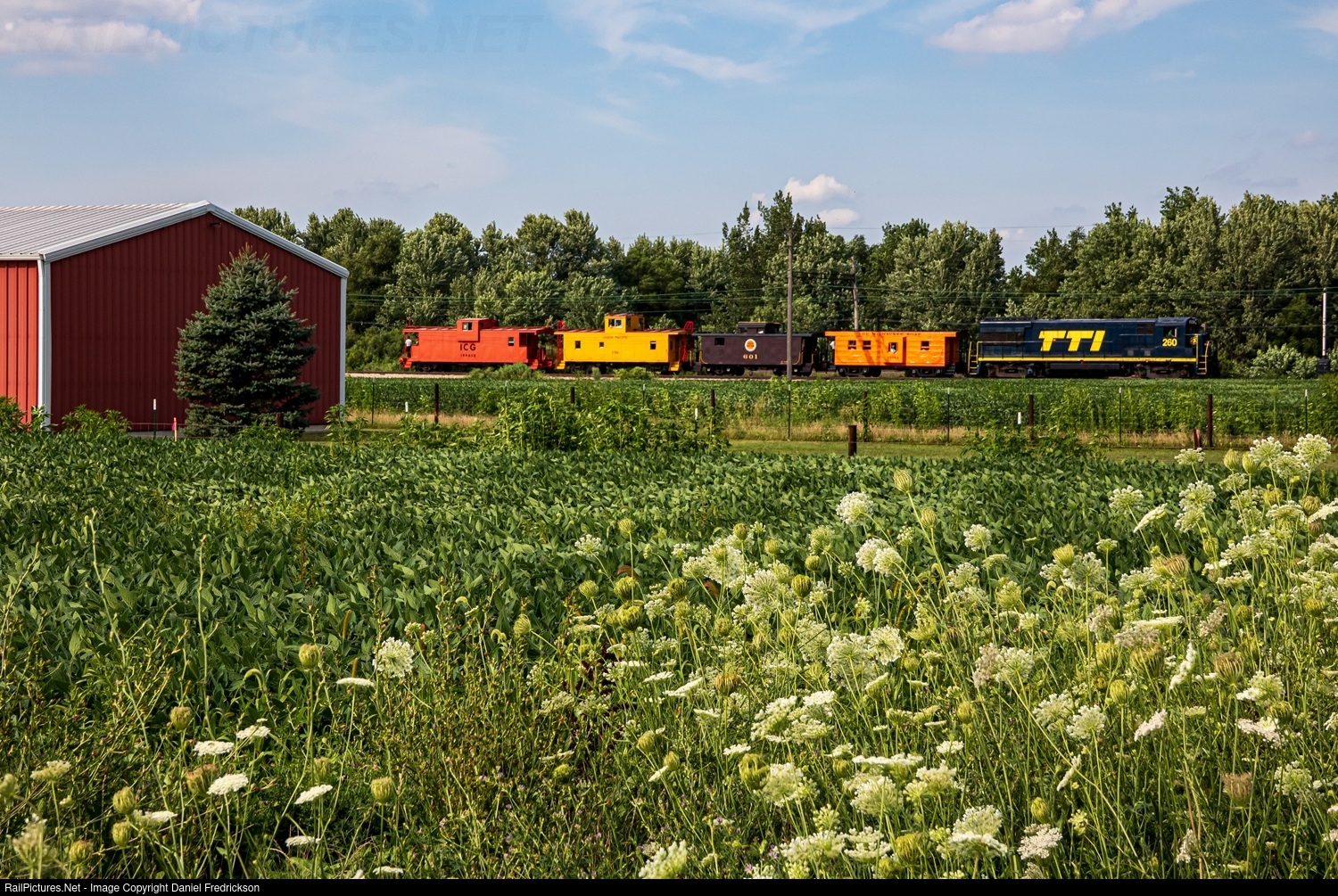 TTI 260 (U28B) leads the caboose train through Johnson Siding during the Illinois Railway Museum's 2025 Diesel Days event.