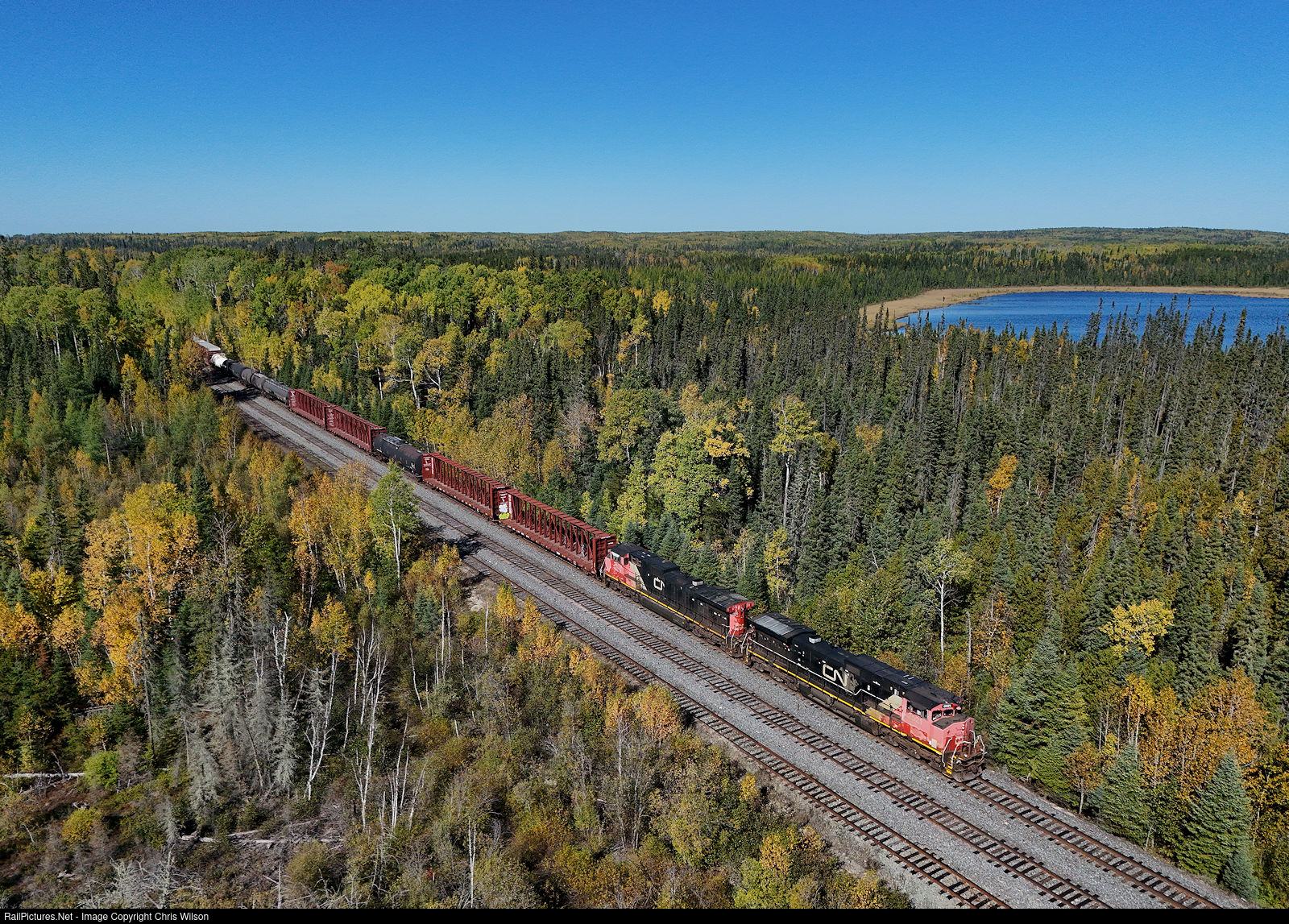CN C44-9WL's 2521 + 2510 haul Symington Yard to MacMillan Yard train 314 east along the Caramat Sub.
