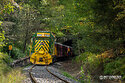Reading, Blue Mountain & Northern (RBMN) GP38-2 no. 2014 is on the end of train JTMA, seen rounding the curve at East Mahanoy Junction. |