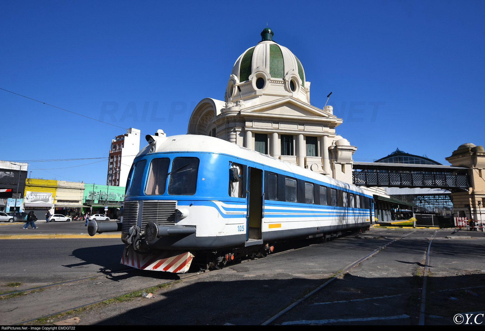 | The Tren Universitario (University Train) heads back into the historic 1906 La Plata station. I drove here from Buenos Aires to catch the unique railcar that serves this line. Built in 1948, the series 0100 was made by Swedish manufacturer NOHAB for Portuguese Railways, which purchased them using American foreign aid from the Marshall Plan. Only 15 of these were ever made, and six were purchased in 2013 by the Argentinian government for branch service. This train was inaugurated in 2013 to connect the various facilities of the University of La Plata with the city's main railroad terminal. The route is approximately 3 miles long and runs along the perimeter of the city. |