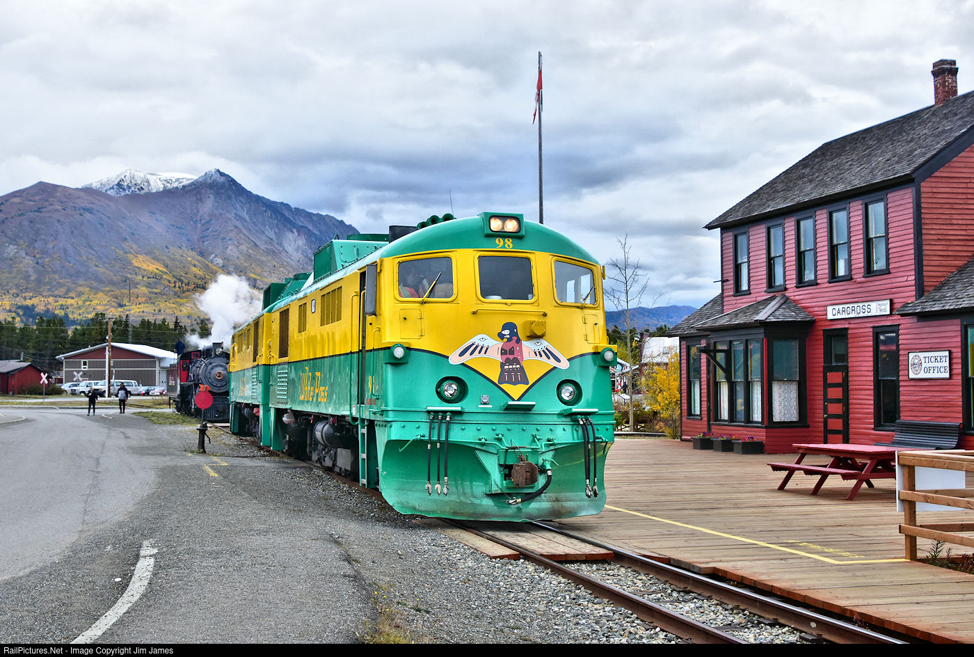 RailPictures.Net Photo: WPYR 98 White Pass & Yukon Route GE 90 Class at Carcross Yukon Territory, Northwest Territories, Canada by Jim James