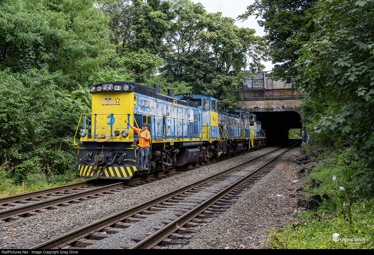 On the morning of September 22, 2025, the Long Island Rail Road picked up the BNSF Railway Ryder Cup OCS special from New York & Atlantic Railway's Fresh Pond Yard in Queens, New York for the final leg of its journey to Garden City, New York. There, the 14-car train served as the BNSF’s operations center and onboard lodging during the 2025 Ryder Cup PGA Championship at Bethpage State Park's Black Course. In this photo, the LIRR locomotives emerge from the Metropolitan Avenue Tunnel as they head west down "5 Main" on the CSX Fremont Secondary (formerly the New York Connecting Railroad) to couple up to the east end of the BNSF train.