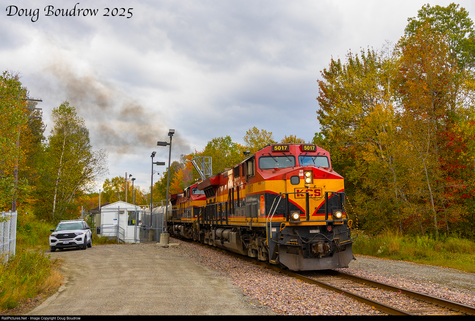 | CPKC Train 120 is seen clearing the customs scanner in Jackman not long after crossing into the United States from Quebec. The matching KCS Belles still look strange in Northern Maine, but are becoming quite common. |