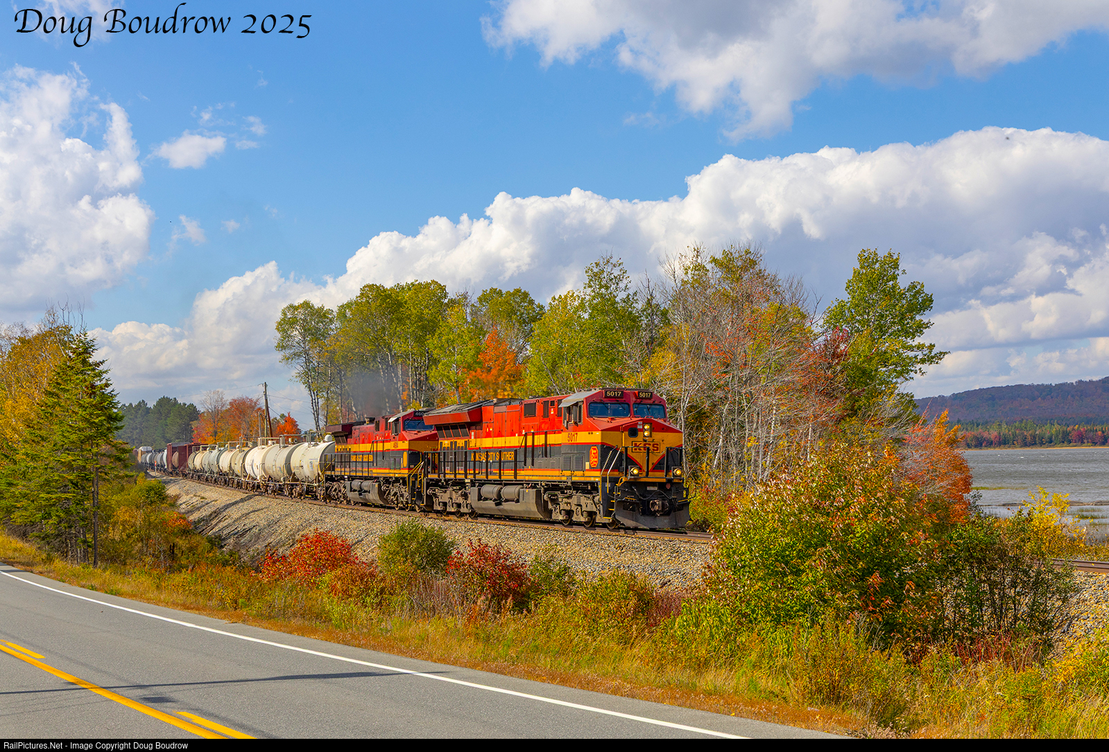 | CPKC Train 120 is seen doing track speed along Long Pond just East of Jackman. The matching KCS Belles still look strange in Northern Maine, but are becoming quite common. |