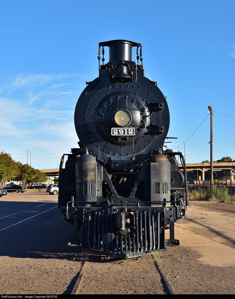 | Santa Fe locomotive #2912 sits in front of the historic depot in Pueblo, Colorado likely never to move again under its own power. |